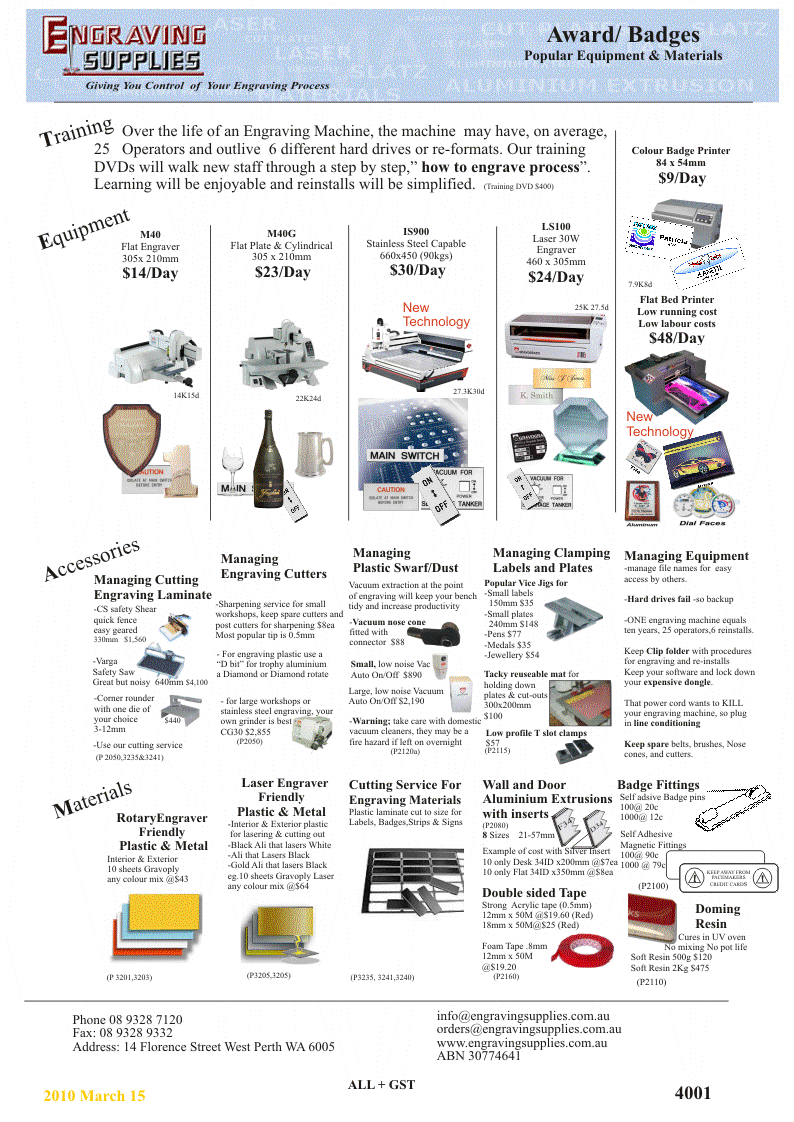 engraving supplies, Engraving Supplies, formerly Sheridans Trade Sales, WA agent for Gravograph, rotary engravers, laser engravers, badge making, sign making, in house label making. engraving machines, materials, training, fast view, printer friendly downloads, contact details, search function