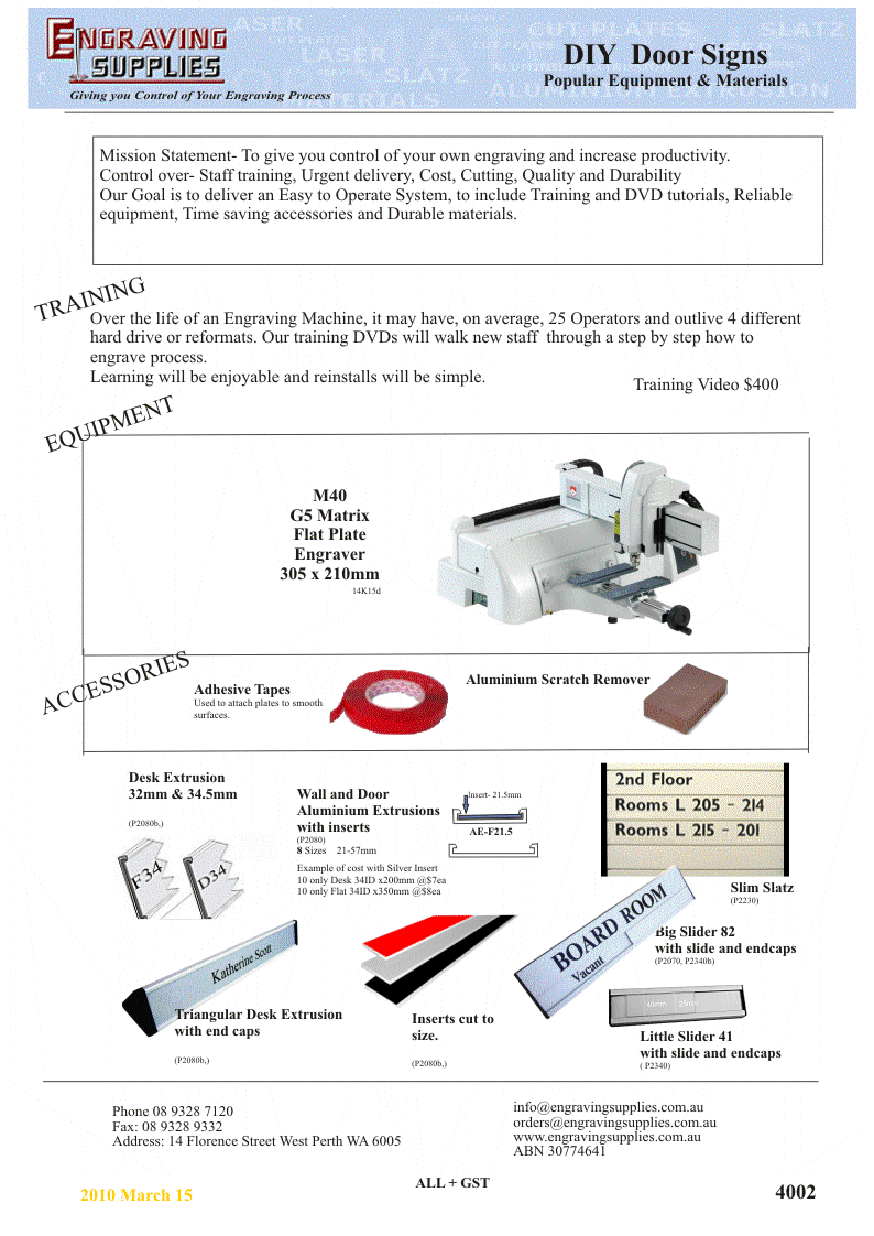 engraving supplies, Engraving Supplies, formerly Sheridans Trade Sales, WA agent for Gravograph, rotary engravers, laser engravers, badge making, sign making, in house label making. engraving machines, materials, training, fast view, printer friendly downloads, contact details, search function pan>